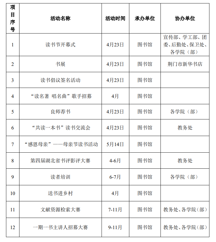 为进一步深化全民阅读活动,打造校园阅读文化品牌,引导全校师生多读书、读好书、好读书,在“世界读书日”(4月23日)来临之际,学校将举办第十三届象山读书节系列活动。现就相关事项通知如下: