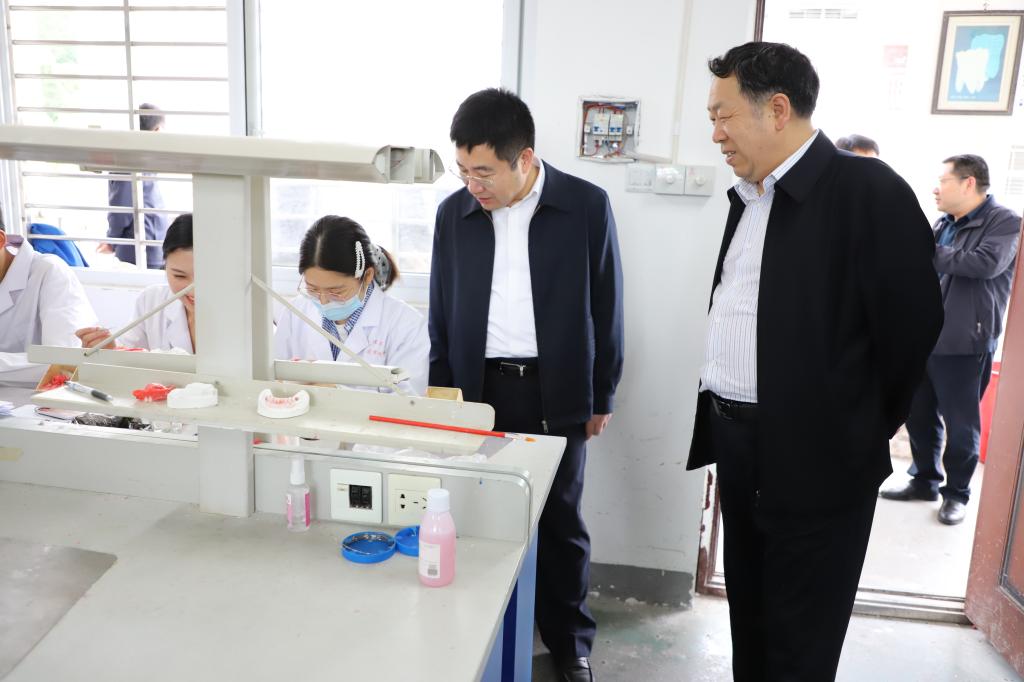 会前,王学民陪同陈继平、吕万刚一行参观了学校服务乡村振兴成果展、智慧琴房,并深入医学院实验室、附属中心医院实地考察。