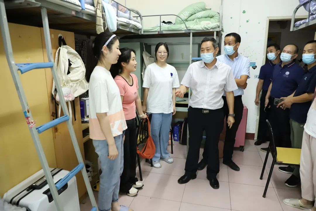 新生报到期间,党委书记王学民、校长刘建清分别带队深入迎新现场和新生宿舍,检查迎新工作、看望新生及家长。