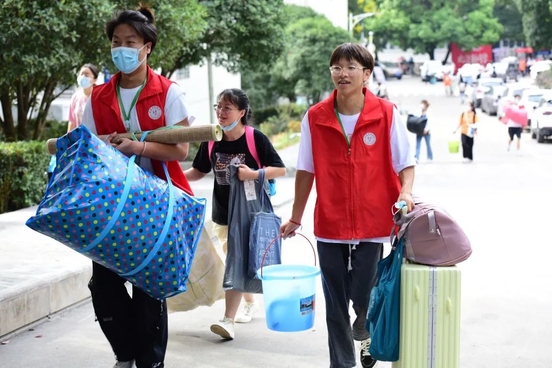 学校志愿者身穿“红马甲”,为新生提供“一站式”服务,从进入校门到核酸检测全程陪同和引导,搬运行李、解疑答惑,哪里需要哪里就有他们美丽的身影,用辛勤汗水和周到服务,让家长放心,让新生舒心。