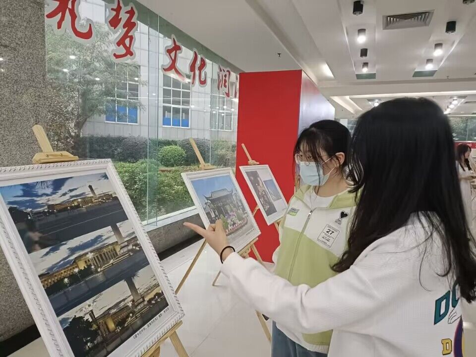活动现场气氛热烈,师生纷纷驻足欣赏,并在自己喜爱的作品前拍照留念,不时发出赞美之声。文学与传媒学院胡欣欣表示“在欣赏这些作品的时候能清晰地感受到祖国的沧桑巨变,感受到学校悠久的历史底蕴和鲜活的青春气息,现在党的二十大已胜利召开,我们青年一代更应该在党的领导下奋进新征程,建功新时代”。文学与传媒学院杨轲芯提到“看到国家现在的欣欣向荣,更希望能够在自己的青春里做力所能及的事,为伟大复兴中国梦努力”。