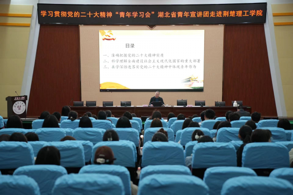 湖北省青年宣讲团成员陈松松同志以《为全面建设社会主义现代化国家贡献青春力量》为题,围绕准确把握党的二十大精神实质、科学理解全面建设社会主义现代化国家的重大部署、在学深悟透落实党的二十大精神中体现青年作为等三个方面做了一堂高水平的宣讲课程。