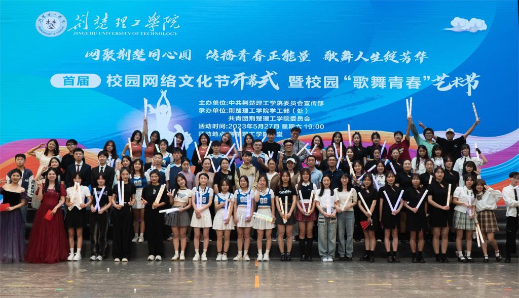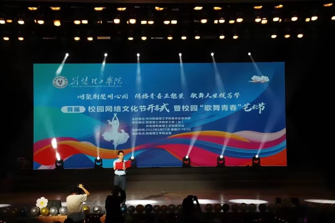 网聚荆楚同心圆,传播青春正能量,歌舞人生绽芳华。5月27号晚,由伟德国际宣传部主办,学工部、校团委承办的首届校园网络文化节开幕式暨校园“歌舞青春”艺术节在荆楚理工会堂举行。校团委书记王睿致辞并宣布开幕,师生代表共300余人参与活动。
