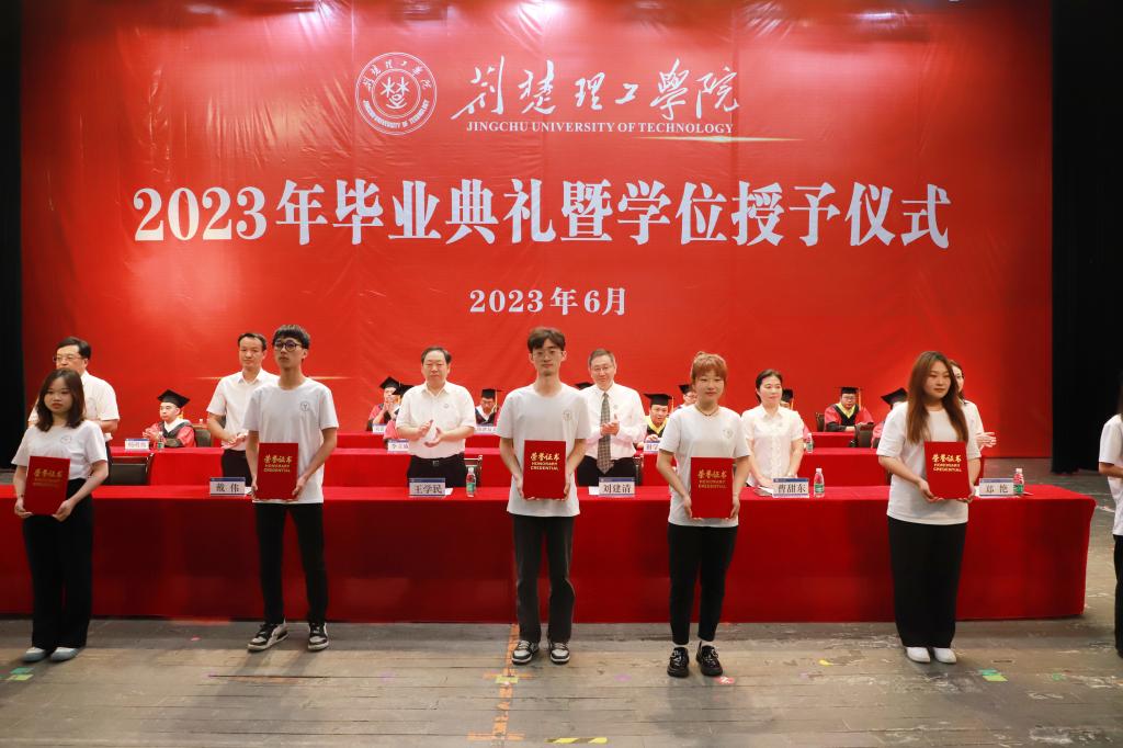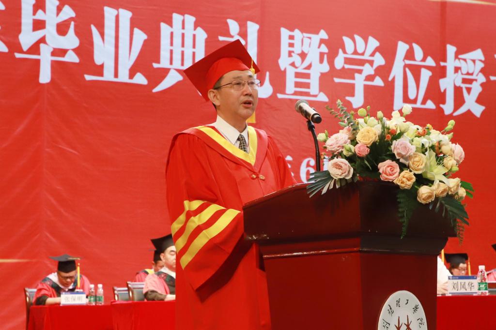 刘建清向2023届毕业生顺利完成学业表示热烈祝贺,向辛勤养育毕业生的父母、悉心培育毕业生的老师表示衷心的感谢,同时回顾了毕业生们参与学校建设、见证学校发展的点点滴滴。经过“抗疫”“最难就业季”的磨砺与历练,同学们不惧困难,耕读躬行,汲取知识力量,塑造了更好的自己;与学校团结一心,逐梦前行,推动学校发展行稳致远,充分展现了同学们“自强不息、克难奋进”的荆楚理工精神。这些都将成为同学们终生难忘的记忆和弥足珍贵的财富。