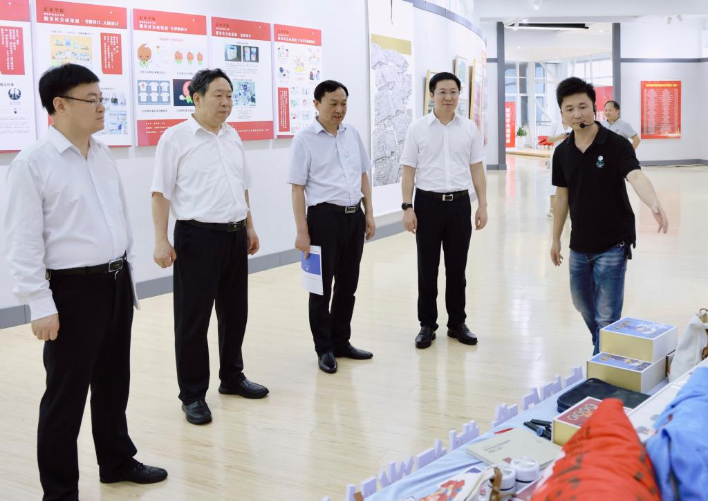 揭牌仪式后,曹秋元、刘振军一行参加民主党派、统战团体“凝心铸魂强根基,团结奋进新征程”主题教育沙龙,并到艺术学院参观学校党外知识分子服务社会成果展。