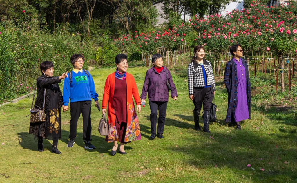 老同志们来到圣境花谷景区,有序游览园区,欣赏秋日的怡人风景,旧友重逢、相谈甚欢,留下了一路欢声笑语。“每年重阳节,学校都会组织我们老同志聚集在一起见见面,让我们一起出去走一走,感谢学校对老同志的关心与照顾。”已退休的陈老师感叹道。