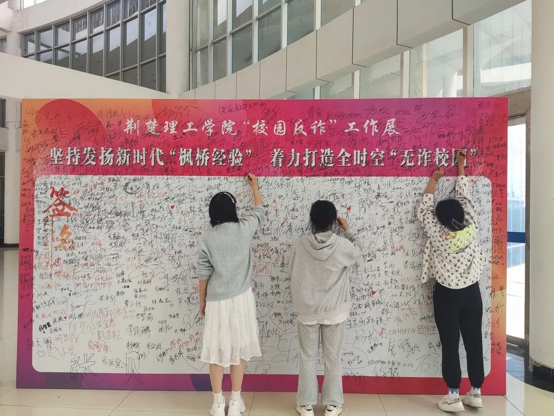 活动现场,师生们也纷纷驻足学习,在签名墙上留下了自己的反诈宣言。