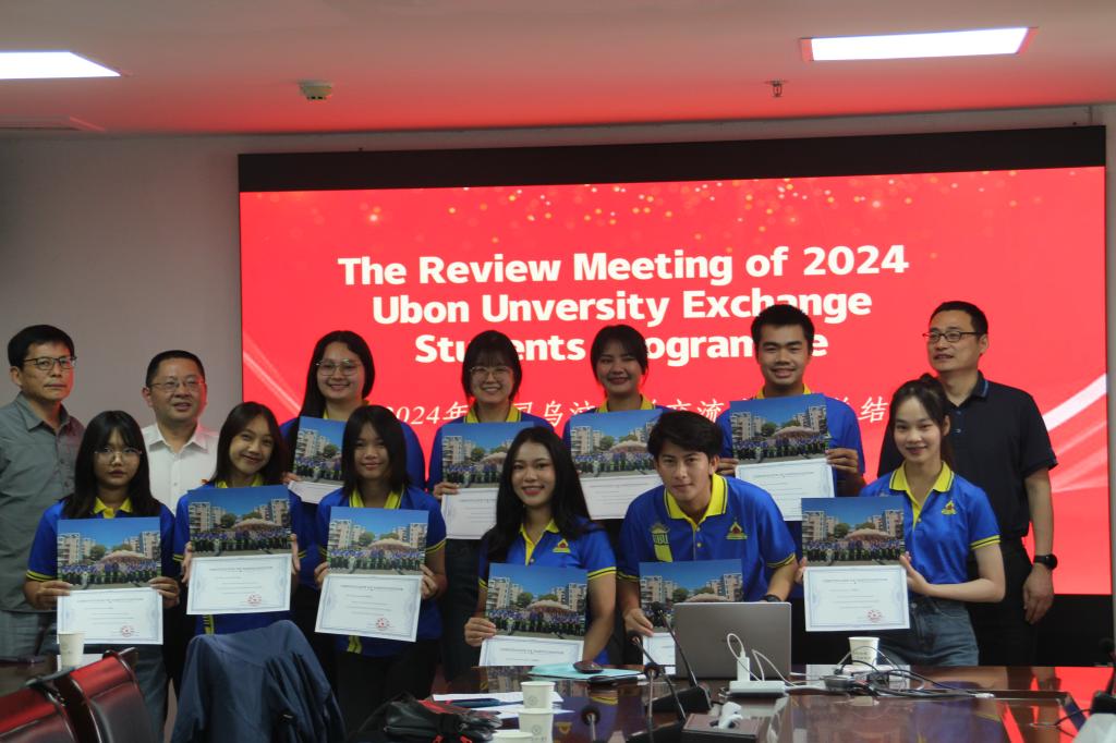 3月28日至4月26日,伟德国际2024年泰国乌汶大学交流生项目圆满完成,为10名泰国乌汶大学交流学生颁发结业证书。
