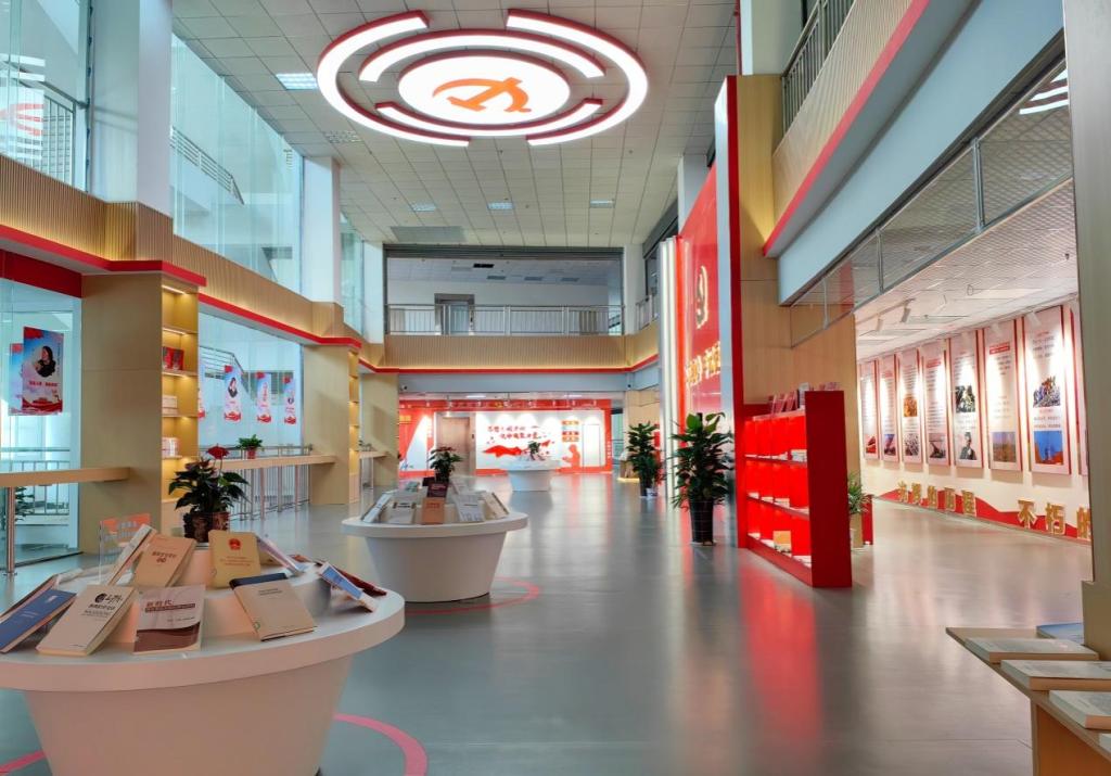 据介绍,教育基地以全面贯彻落实“三全育人”理念为宗旨,有效整合了学校红色图书文献信息平台资源、典型人物事迹资料及空间布局优势,成功构建了“可观”“可听”“可思”多能于一体的红色文化主题宣讲体系,形成了“瞻仰参观”“学习研讨”“涵养文化”的红色教育模式。该基地布局包括主题展厅、展廊以及研讨中心三大核心区域,总面积达1000平米,为师生提供了充足的学习交流空间。