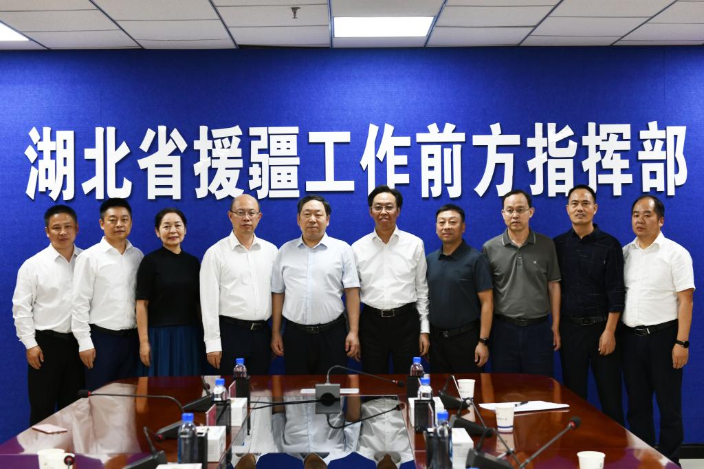 在湖北省援疆工作前方指挥部,前方指挥部党组书记、总指挥方向荣会见了王学民一行,双方就对口支援工作深入交流。方向荣指出,伟德国际victor1946办学特色鲜明,学科专业设置与博州重点产业布局契合度高,在对口支援工作上定能有所作为,双方要进一步深化合作,建立定期互访机制,推动合作项目落地,前指将全力做好协调工作。