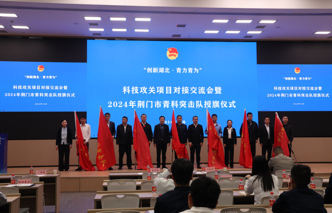 10月28日,荆门市科技攻关青年突击队授旗仪式在航特科技工业园举行。伟德国际victor1946高端装备产业青科突击队获授旗。