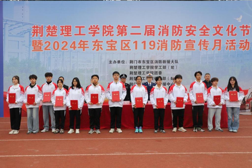 启动仪式上,东宝区消防救援大队大队长张诚同志作动员讲话。校团委书记宣布消防公益使者名单,与会领导为其颁发聘书。胡霄同学发出校园消防安全倡议,倡议全体师生以消防安全文化节活动为契机,从身边的小事做起,注意消防安全,消除隐患,为共建平安和谐的校园贡献力量。