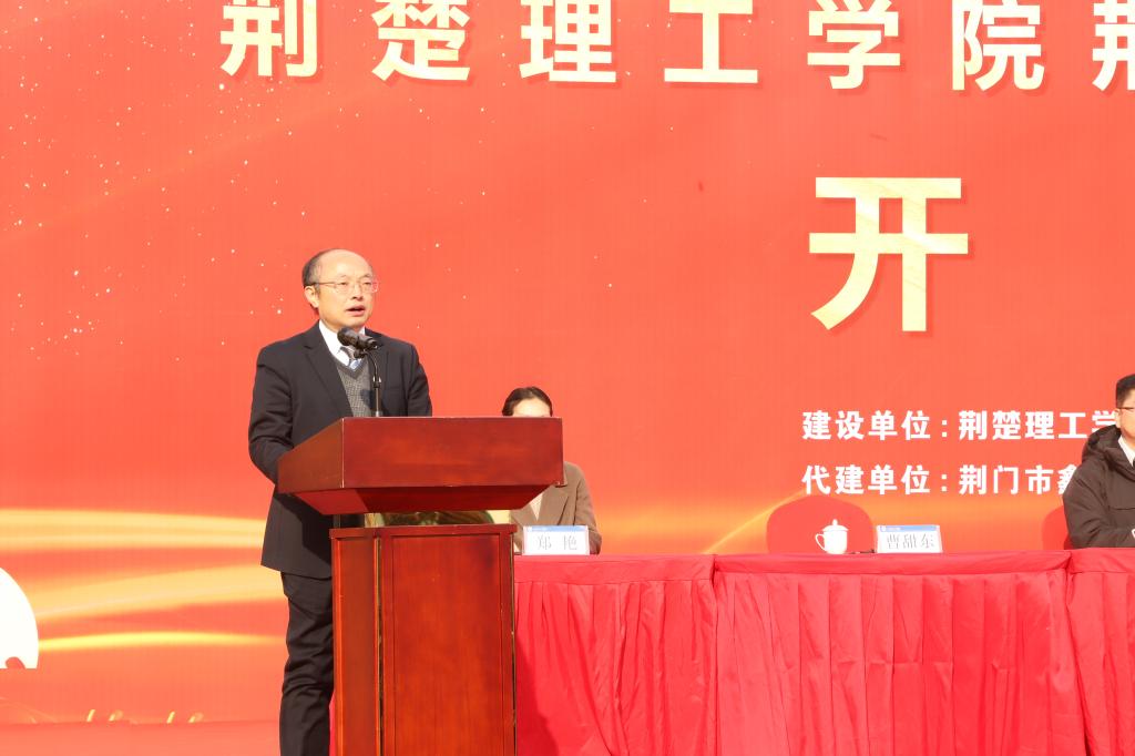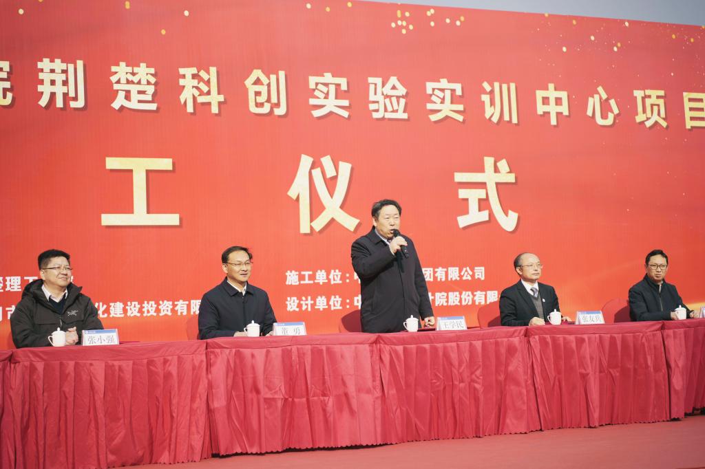 张友兵在致辞中表示,建设荆楚科创实验实训中心大楼,是学校深入贯彻习近平总书记关于科技创新的重要论述和党的二十大和二十届三中全会精神的具体行动,也是学校积极响应国家创新驱动发展战略,贯彻落实党中央、国务院关于增强教育改革发展活力、加快建设教育强国决策部署的重要举措,更是服务地方经济发展、回馈社会的重要平台。荆楚科创实验实训中心是学校发展史上规模最大、总投资额最多的单体工程,也是学校建校以来获得中央预算内支持力度最大的项目。他强调,各参建单位要牢固树立质量意识、打造精品工程,注重协作配合、加快项目推进,严抓文明施工、确保项目安全。力争通过各方共同努力,把荆楚科创实验实训中心项目建设成精品工程、阳光工程、放心工程,成为学校的“标杆工程”。