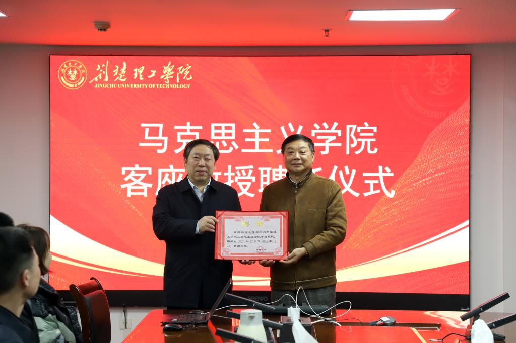 考察结束后,举行马克思主义学院客座教授聘任仪式。王学民为陈人康教授颁发了聘书。