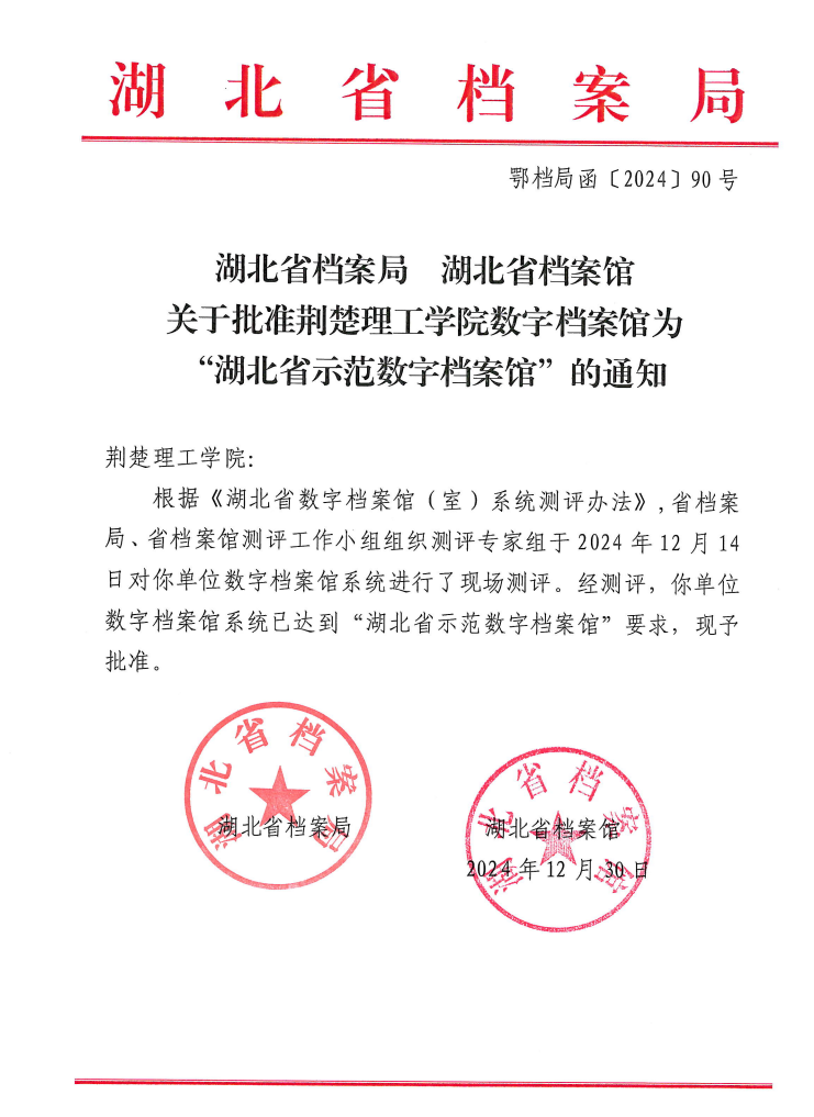 近日,湖北省档案局、档案馆印发通知,正式批准伟德国际victor1946档案馆为“湖北省示范数字档案馆”。
