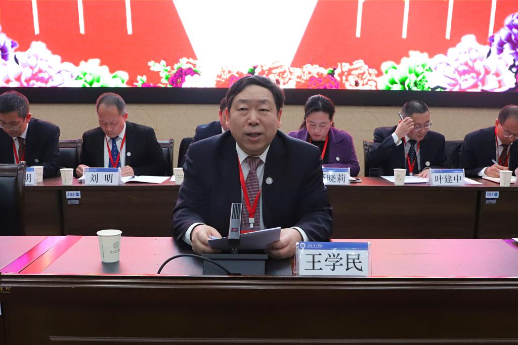 校长张友兵向大会作了题为《激发实干斗志凝聚改革合力奋力开创学校事业高质量发展新局面》的工作报告,报告全面总结了一年来,学校坚持以习近平新时代中国特色社会主义思想为指导,深入学习贯彻党的二十大和二十届二中、三中全会精神以及习近平总书记考察湖北重要讲话精神,落实立德树人根本任务,深化教育科技人才体制机制一体改革,聚焦“审核评估”和“达标申硕”两大目标体系,对标省属高校高质量发展综合绩效考核总体要求,加强顶层设计,强化内涵发展,不断提升核心竞争力,学校各项事业取得了新进展新成效。过去一年,党的全面领导得到新加强,人才培养质量实现新提升,学科建设取得新进展,科研工作实现新突破,学生工作实现新跃升,师资队伍建设展现新活力,社会服务能力迈上新台阶,办学保障支撑得到新改善。