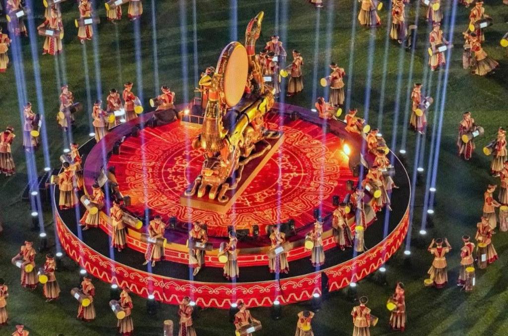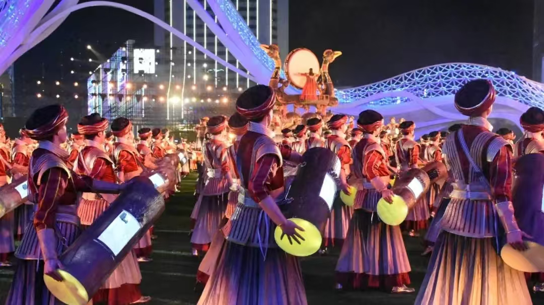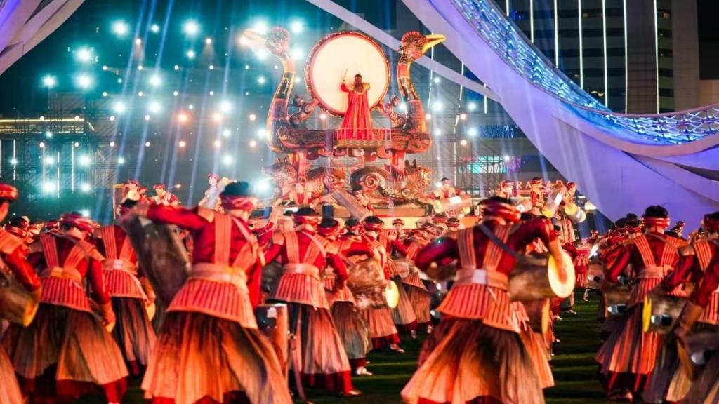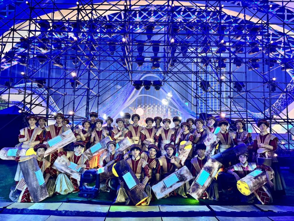 在直播现场,伟德国际学子身着色彩鲜艳的民族特色服饰,手上有力敲打着乐器,凭借灵动的舞姿,在春晚舞台上绘就一抹绚烂亮色。琴鼓表演舞蹈动作融入了中华武术的动作和架势,转身、半蹲、举鼓……他们身姿矫健、神采飞扬舞动间彰显刚柔并济的力量,演绎出一场震撼人心的视听盛宴。