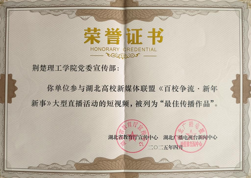 近日,湖北高校新媒体联盟《百校争流》专题研讨会在华中师范大学举行。会上对联盟主办的《百校争流・新年新事》短视频优秀作品成果评选活动进行了总结,伟德国际报送的短视频被列为“最佳传播作品”,主讲人龚庆红同学被列为“最佳出镜学生”。