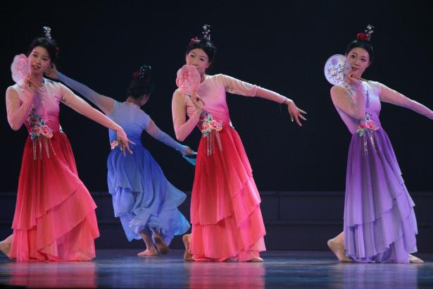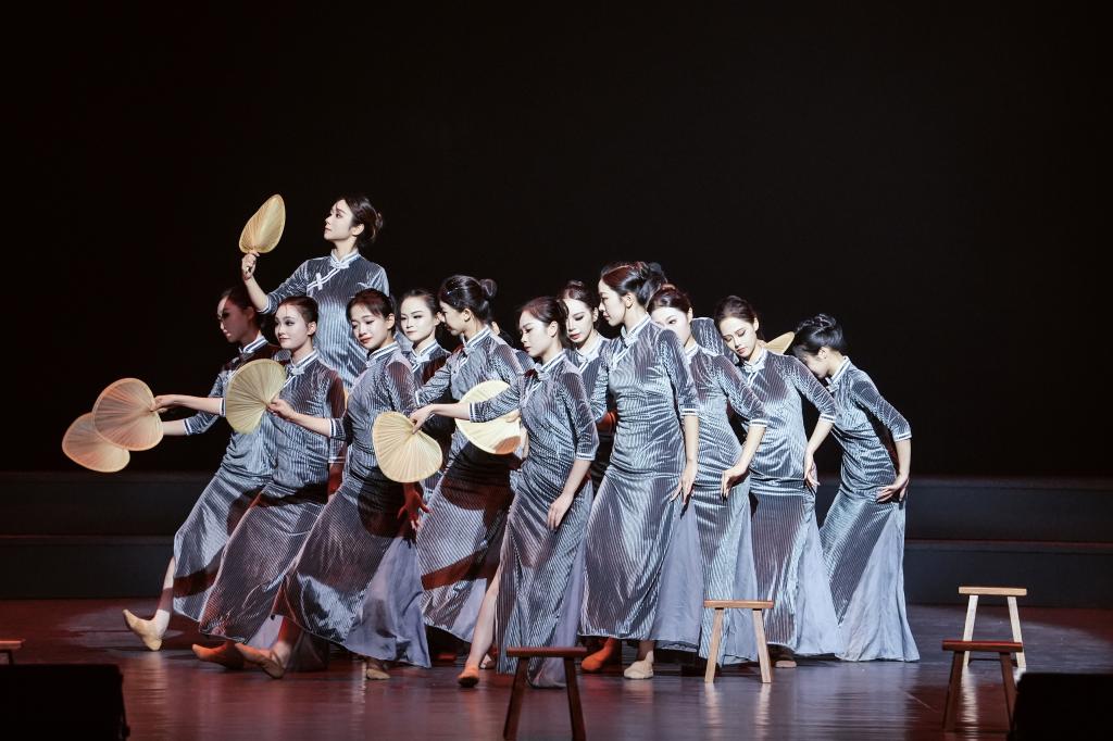 汇演以“序”开篇,拉开逐梦帷幕。“舞来·吾往”篇章,《锦簇》以灵动舞姿勾勒青春繁花,《织嫁》借助传统元素传递文化根脉,《无人知晓》通过细腻表达诉说成长哲思,在古典与现代的交织中,回溯专业学习的逐光旅程;“颂情·绽华”篇章中,《觉醒年代》以舞蹈的形式复刻热血历史,让革命精神跨越时空,《黄河岸边芦花开》通过群舞传递家国大义,将思政内涵融入艺术表达,点燃了师生们的家国情怀;“生生不息”篇章聚焦多元文化,傣族《花漾》、海阳秧歌《珊瑚颂》、蒙族《狼图腾》等作品,串联起不同民族的风情,彰显了文化传承的使命,《漫落花间》《天路》选段、《轨迹》等在古典与现代的碰撞间,书写青春对信仰、理想的追寻。