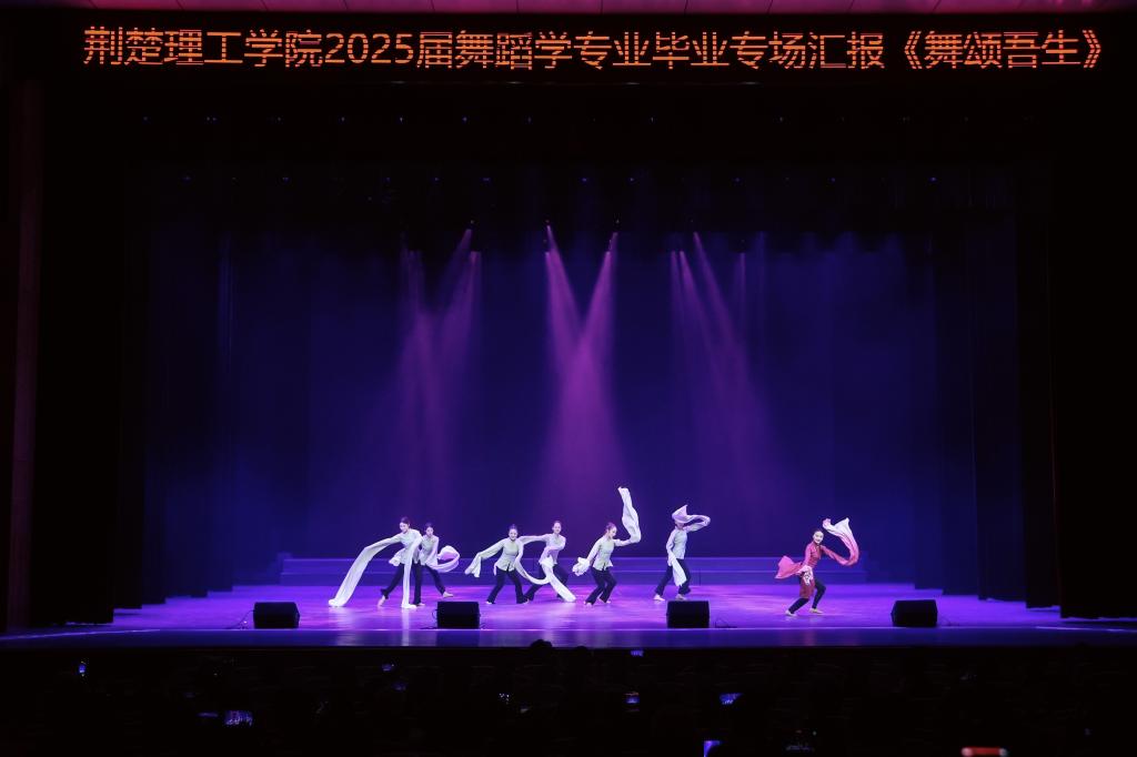 6月5日晚,荆楚理工会堂内灯光璀璨,艺术学院2021级舞蹈学专业毕业专场汇报演出——“向美而行,以美润心”大思政课之《舞颂吾生》精彩启幕。校长张友兵,党委常委、纪委书记蒋永斌,党委常委、宣传部部长郑艳,上海戏剧学院舞蹈学院教授张玉玲,湖北师范大学、湖北科技学院、湖北文理学院等校外专家,荆门市政府企业代表,学校相关职能部门负责人及艺术学院师生近900人共同观看了演出,共同见证这场将艺术之美与思政教育深度融合的生动实践。