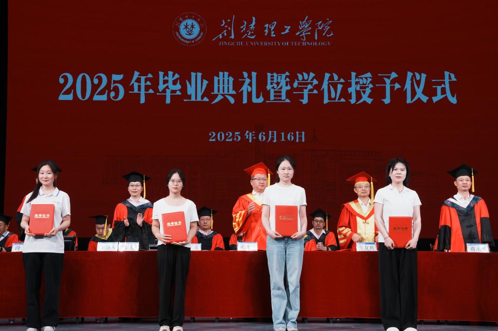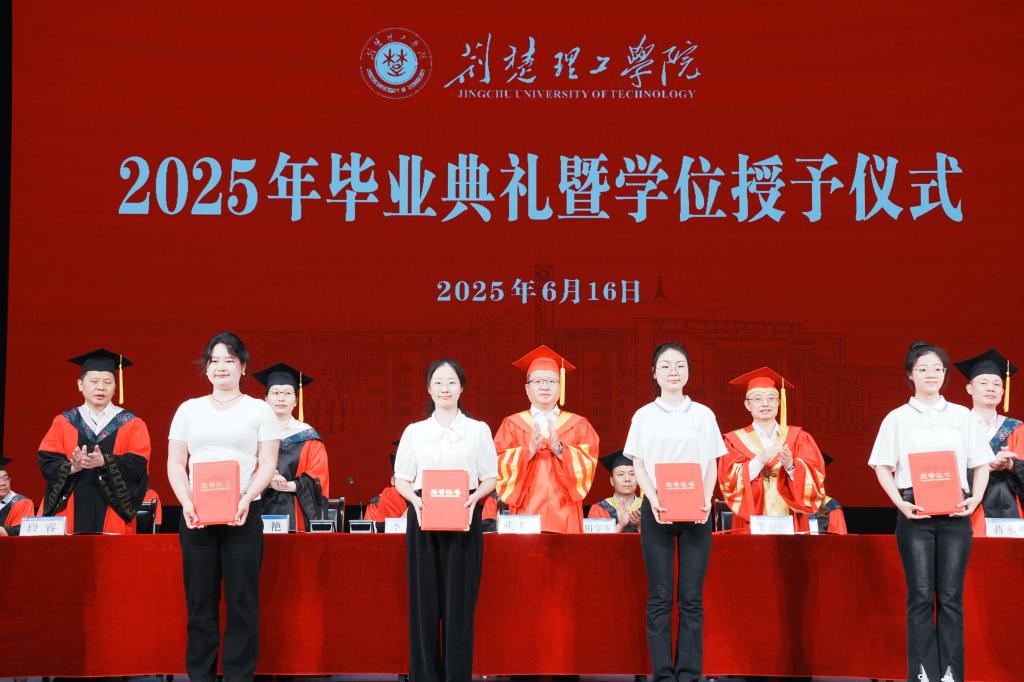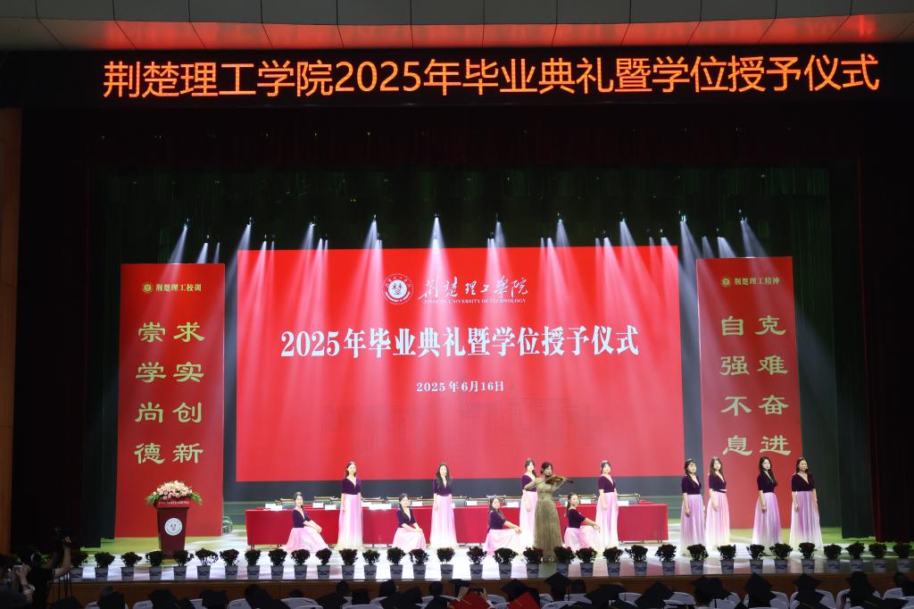6月16日上午,伟德国际2025届毕业典礼暨学位授予仪式在荆楚理工会堂举行。校领导、学位评定委员会委员、各学院及职能部门负责人、师生代表、校友代表、毕业生家长代表齐聚一堂,共同见证5223名毕业生开启人生新篇章。校党委副书记郑艳主持仪式。