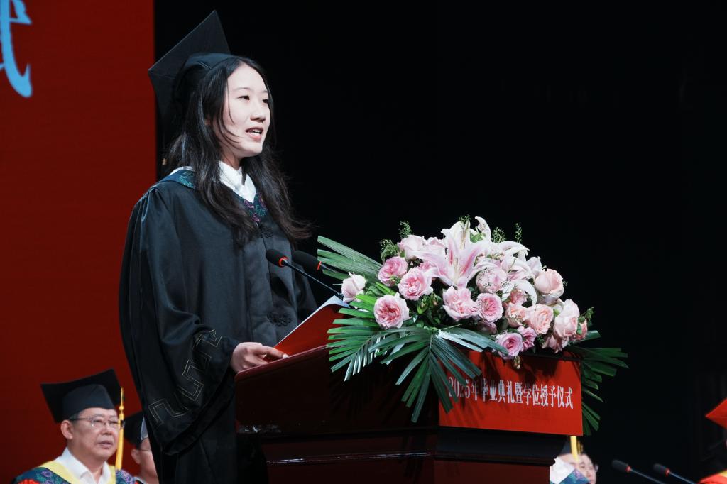 典礼上,医学部唐莺铭作为毕业生代表分享求学感悟,师范学院陈舒薇代表在校生送上祝福,教师代表、智能制造学院教师刘进寄语学子坚守初心。