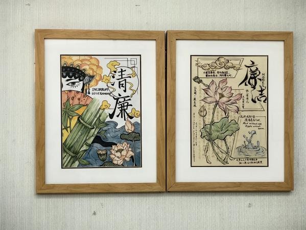 此次廉洁文化作品展佳作荟萃,共展出290余幅作品,涵盖190余幅书法、绘画作品与97幅海报作品。师生们以艺术为媒,通过多元化的创作形式生动诠释廉洁文化的时代内涵。水墨丹青间,莲荷翠竹勾勒出高洁品格;笔走龙蛇时,古训箴言传递着清廉心志;现代设计中,创新表达彰显新时代廉政理念。