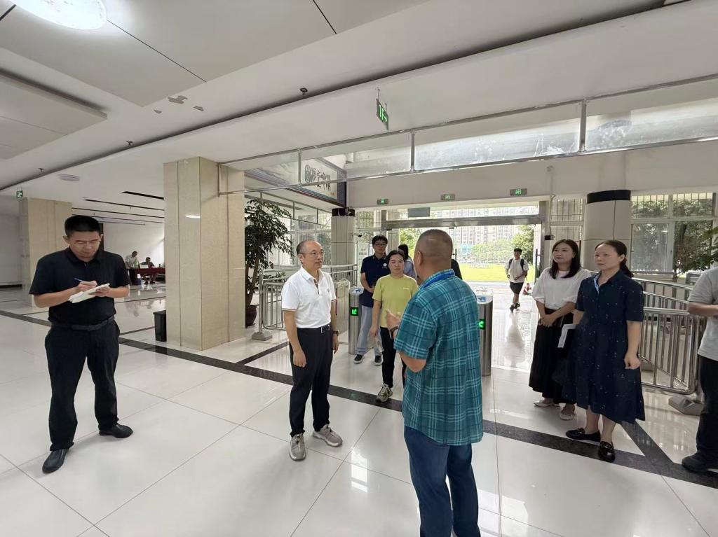 9月4日上午,校党委书记武建斌、校长张友兵带队开展2025年秋季学期校园安全大检查,现场指导部署迎新工作。全体校领导参加检查。