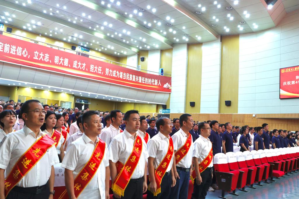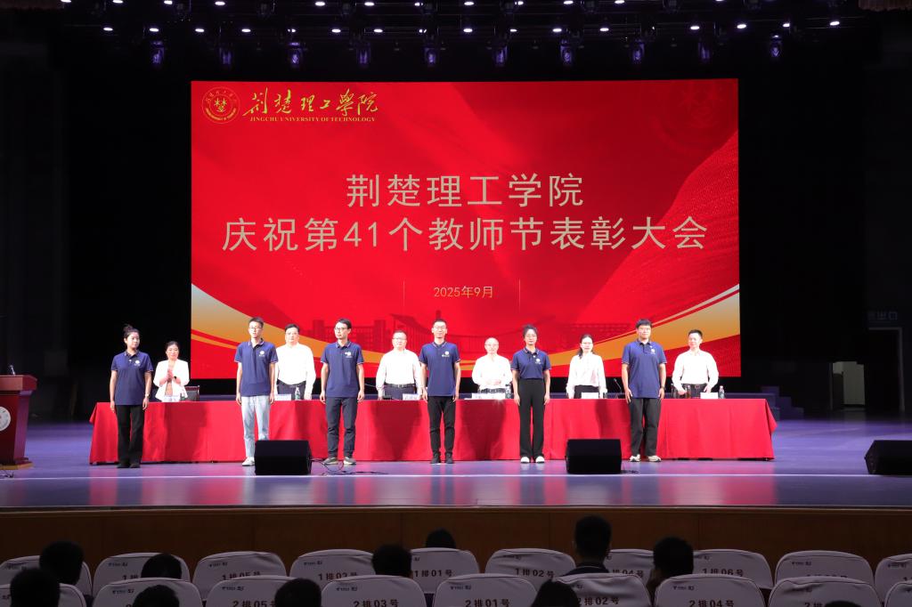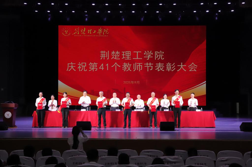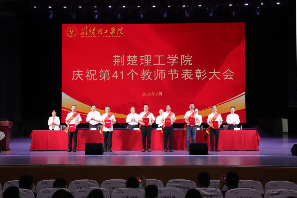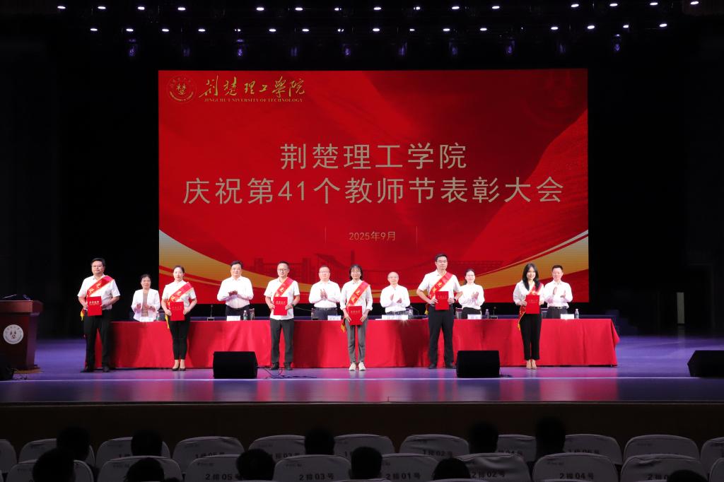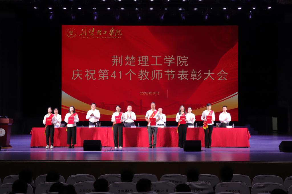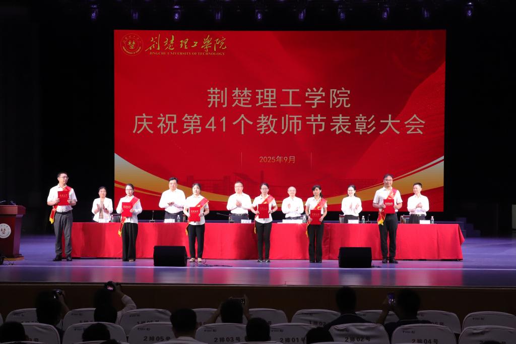大会对2024年度先进集体和先进个人、从教30年教职工、教学先进单位和个人、科研先进工作者,以及第八届师德标兵、第六届教学名师进行了表彰,通报了湖北省第九届高校青年教师教学竞赛获奖情况。校领导为获表彰的先进集体和个人颁奖,为新教师代表佩戴校徽。