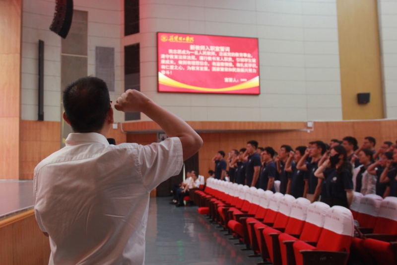 大会最后,师德标兵黄业传教授带领全体新入职教师庄严宣誓。(审稿人:钟绍辉)