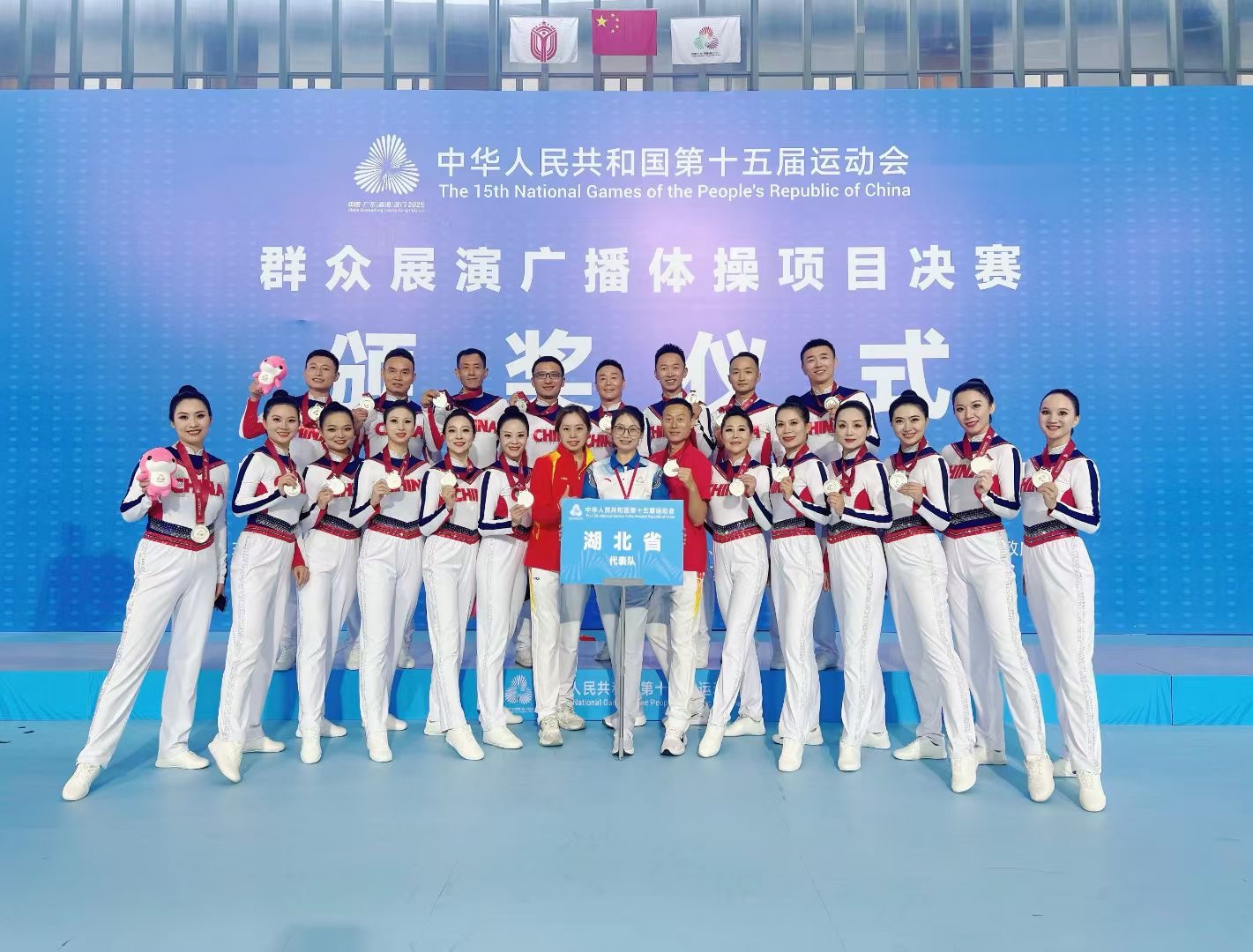 9月21日,在珠海举办的第十五届全运会群众展演类广播体操项目比赛中,湖北省代表队获全国二等奖。伟德国际教师张献芳作为队中一员,与队友协作拼搏,尽显湖北体育人卓越风采。