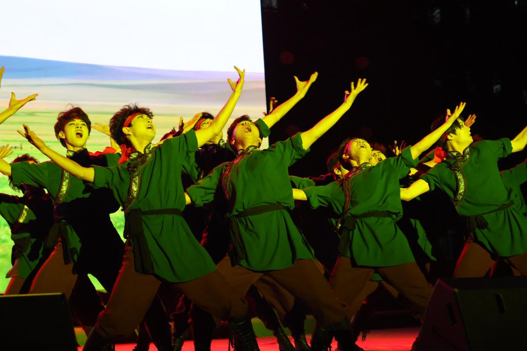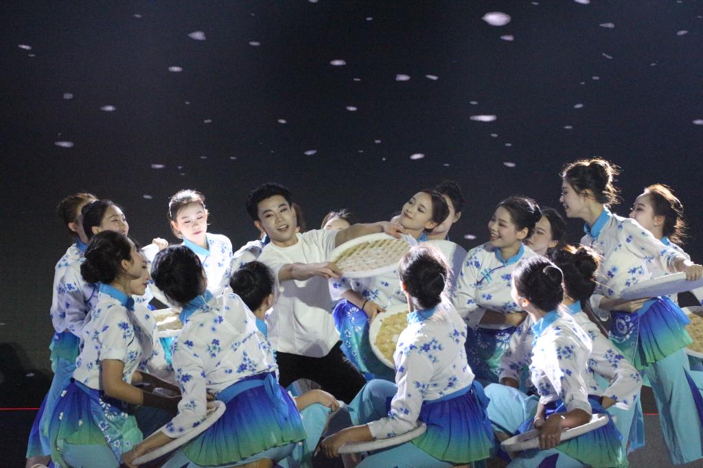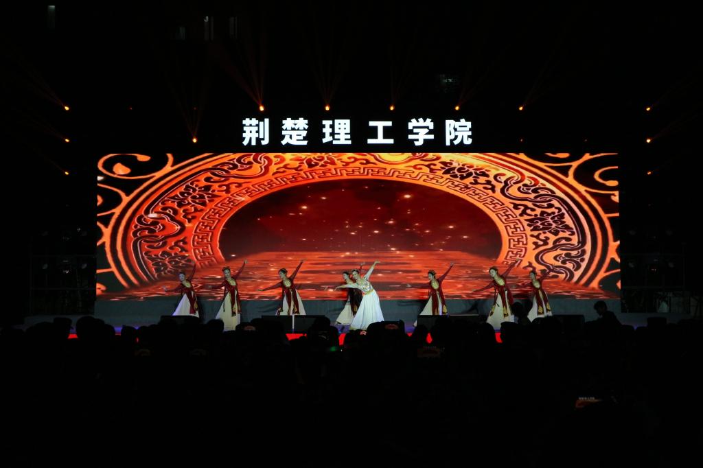 晚会在开场舞《舞绘青春・爱出发》中拉开帷幕,瞬间点燃全场氛围。体育操《刚柔并济・武舞同行》将体育舞蹈的优雅与武术的刚劲巧妙融合,呈现出极具冲击力的视觉体验;汉服秀《穿越古今・共赏华裳》与舞蹈《雪枣印霜花》交相辉映,演绎了华夏衣冠的典雅神韵,将荆门非遗“八角雪枣”的匠心搬上舞台,展现了荆门非遗的独特魅力,为观众铺展一幅传统文化的瑰丽画卷;民乐《不谓侠》的江湖豪情与古筝《盛世国乐》的典雅气韵,在丝竹管弦间传递文化自信的强音。