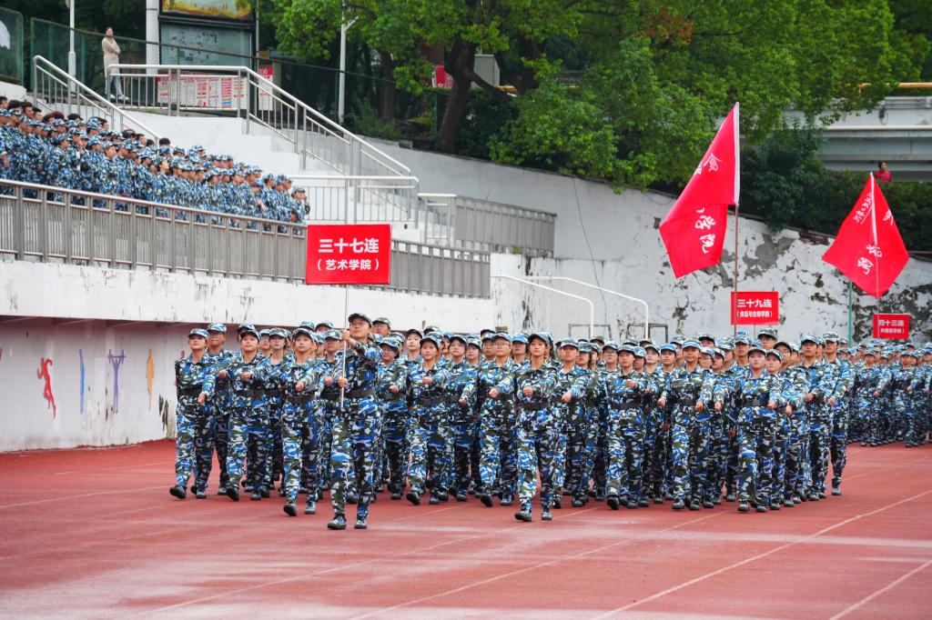 在军训成果展示环节中,各受阅方阵军容严整、士气高昂,依次进行了分列式、军体拳等训练科目的汇报演示。同学们步伐铿锵、动作有力、口号嘹亮,全面展示了为期两周的军训所取得的扎实成效,彰显了2025级新生奋发有为、团结进取的青春风采。