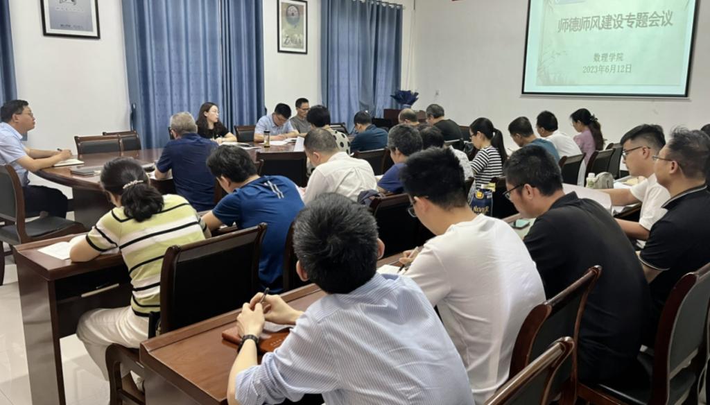 为进一步加强师德师风建设,全面提升教师思想政治素质和职业道德修养,近日,数理学院召开了师德师风建设专题会议,开展师德师风系列学习活动。学院全体教职工参加会议。