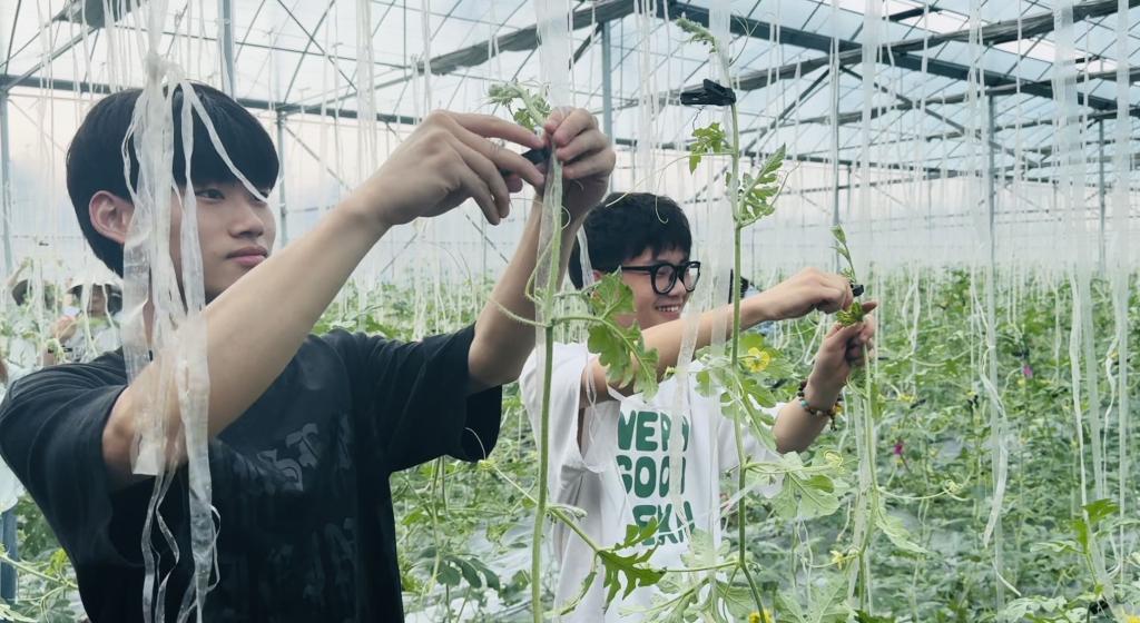 在双井村,村支书刘伟老师指导学生学习西瓜吊秧、修枝的技巧和方法。课堂上,学生们不仅掌握了西瓜种植的基本知识,还深刻体会到了劳动的辛苦和收获的快乐。
