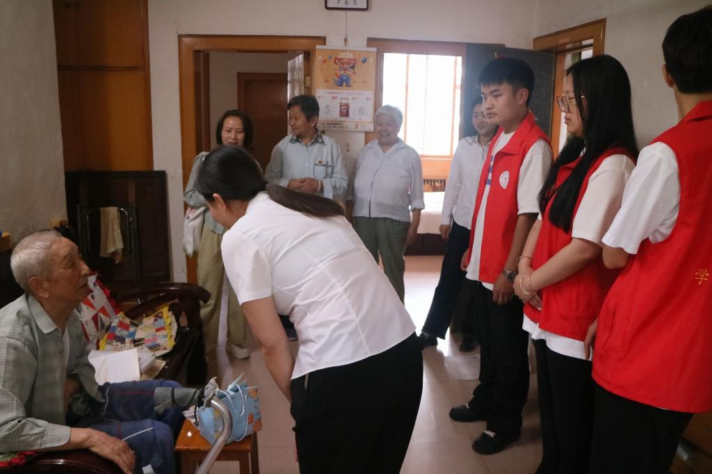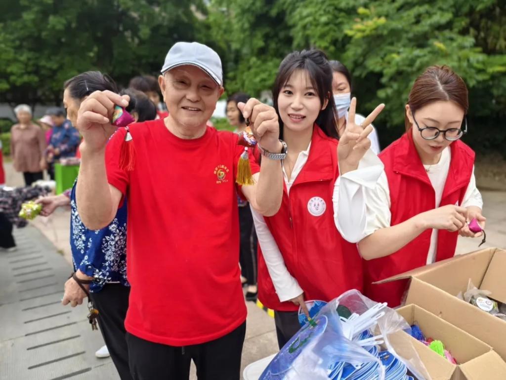 活动中,学生志愿者们细致耐心地为社区居民详细介绍了端午主题小游戏的规则,并积极鼓励在场居民踊跃参与。现场气氛热烈非凡,参与游戏的居民们赢得了粽子、香包、鸭蛋等传统美食作为奖励。此外,学生志愿者们还承担着社会责任,他们为现场居民普及了防范电诈知识,提高了居民的防骗意识。同时,志愿者们还主动走进老党员家中,与他们亲切交流,了解他们的日常生活和身体状况,并为他们提供了清洁卫生的服务。对于行动不便的高龄党员,学生志愿者们更是将端午大礼包亲自送到他们手中,传递了节日的温暖与关怀。