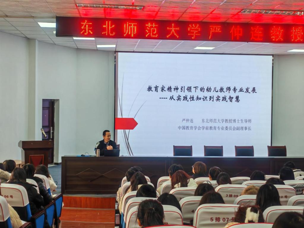 12月20日上午,东北师范大学教授、博士生导师,学前教育学科负责人严仲连受邀来伟德国际交流并作主题讲座。