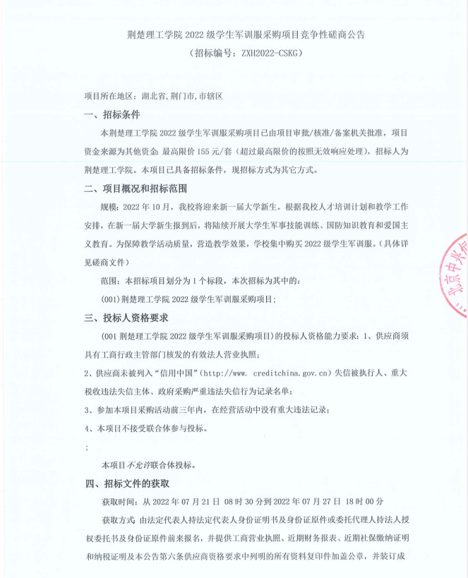 伟德国际victor19462022级学生军训服采购项目竞争性磋商公告(推送)