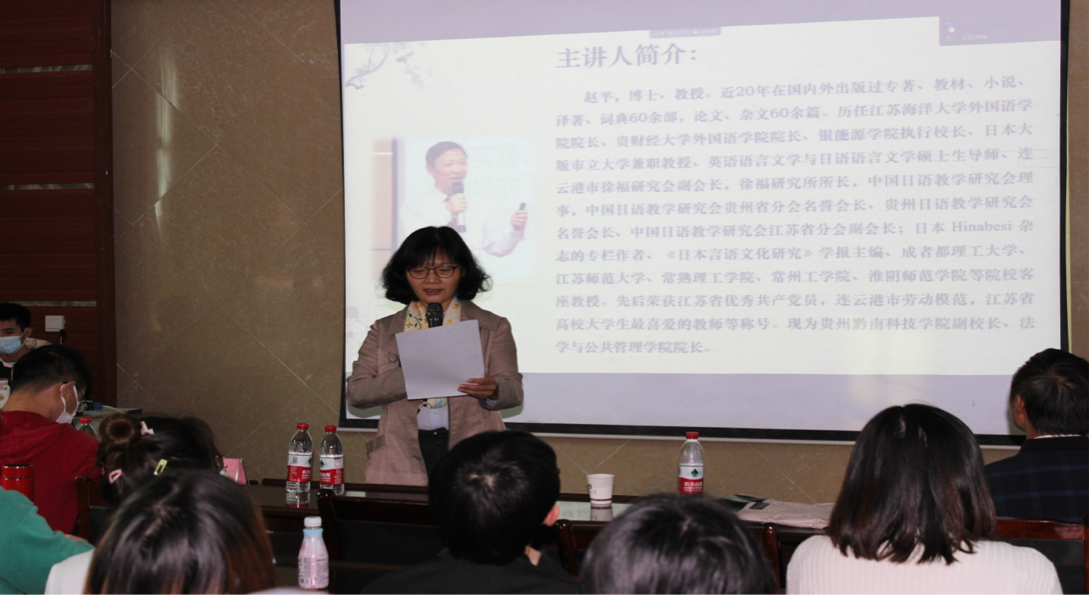 赵平教授认为;“笨鸟恒飞,立志高远”,正确的学习方法在他的学习生活中起了不可忽视的作用。赵平教授将自己独特的学习方法结合多年经验向同学们倾囊相授,大家在赵平教授幽默的讲述中受益匪浅,对日语学习有了更深刻的理解。